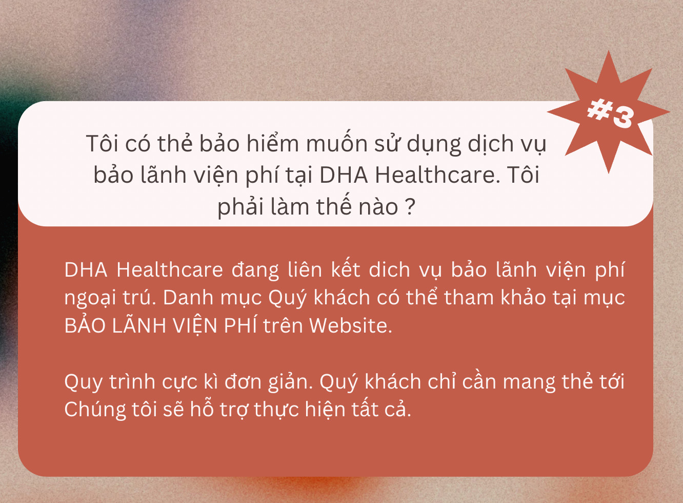 Khách hàng: Tôi có thẻ bảo hiểm muốn sử dụng dịch vụ bảo lãnh viện phí tại DHA Healthcare. Tôi phải làm thế nào ?