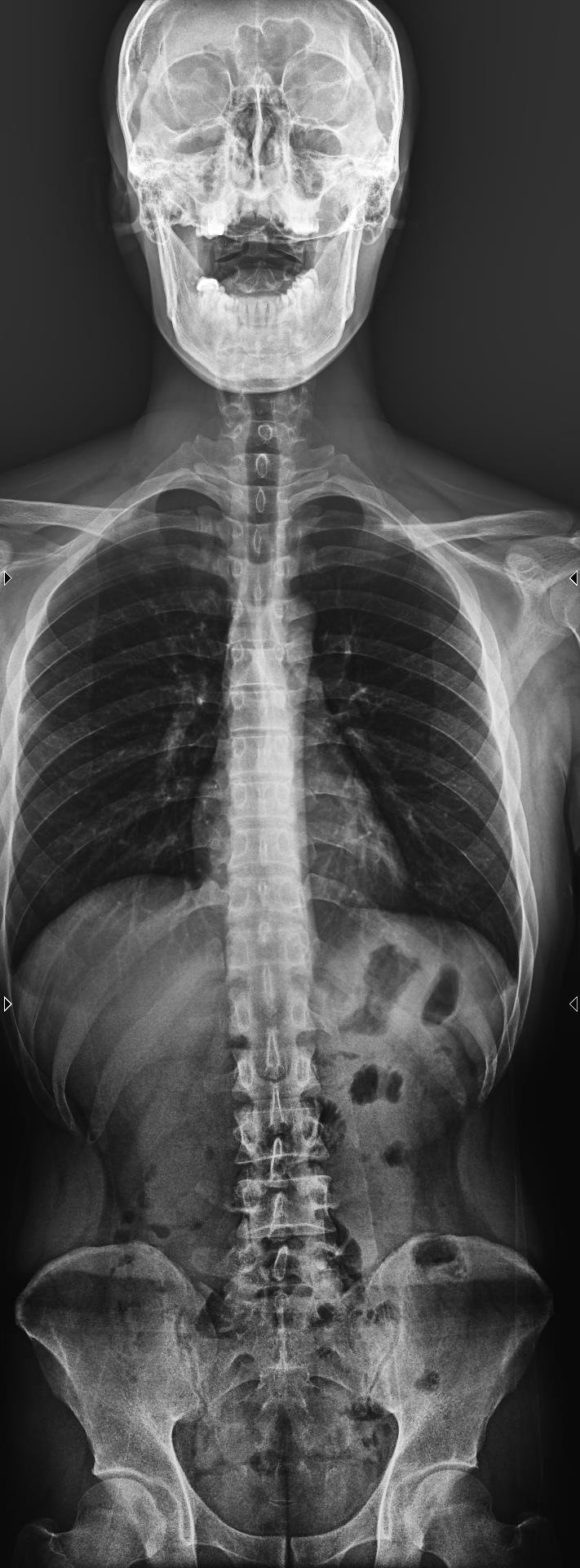 Ảnh chụp X-Quang cột sống (ảnh trên: một phần, ảnh dưới: toàn phần)