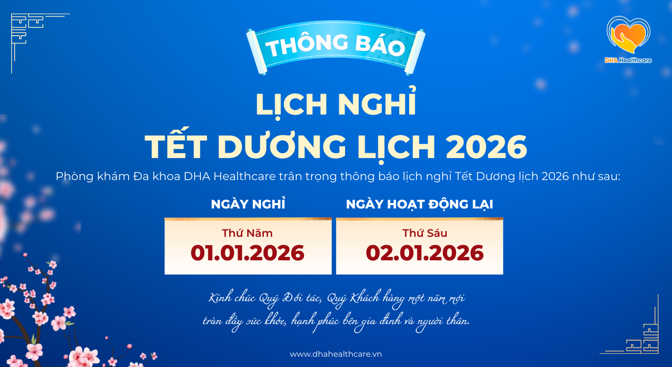 DHA Healthcare trân trọng thông báo đến Quý Đối tác, Quý Khách hàng lịch nghỉ Tết Dương Lịch 2026 như sau: